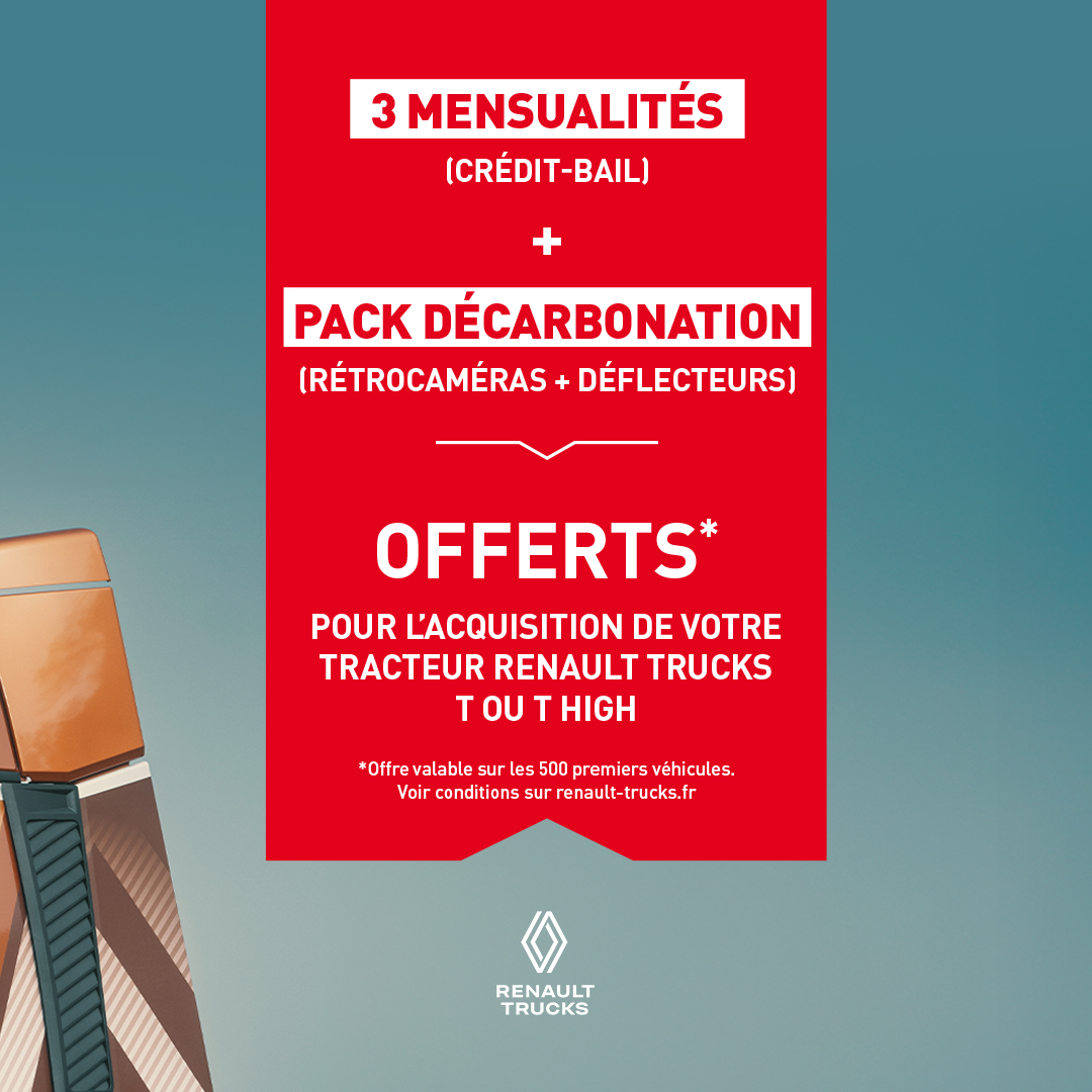 Pour tout achat d’un tracteur Renault Trucks T ou T High thermique, vous bénéficiez de :