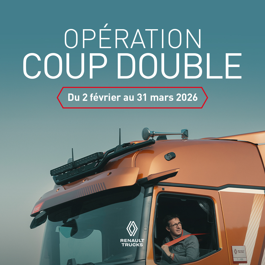 Jusqu’au 31 mars 2026, avec l’opération Coup Double Renault Trucks, vous faites d’une pierre deux coups : moins de coûts, moins de CO₂.
